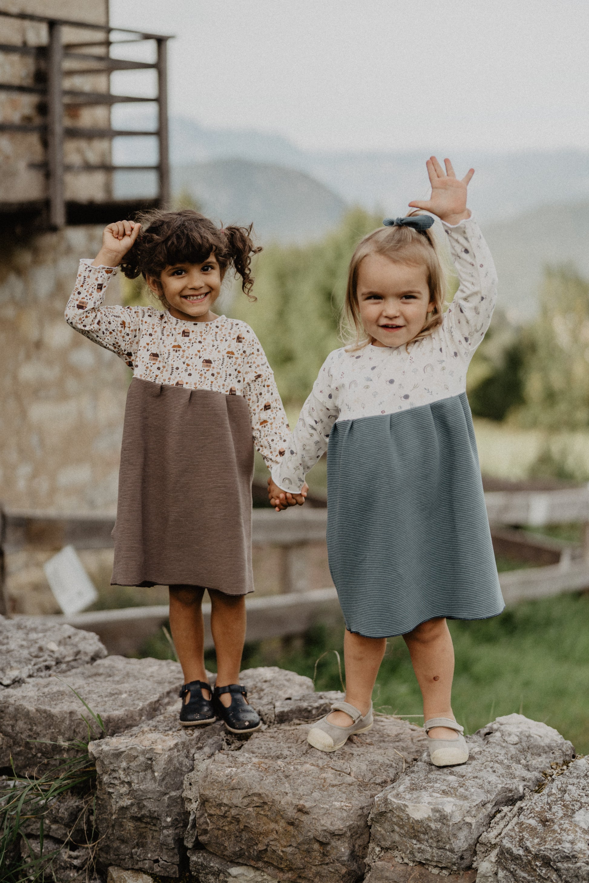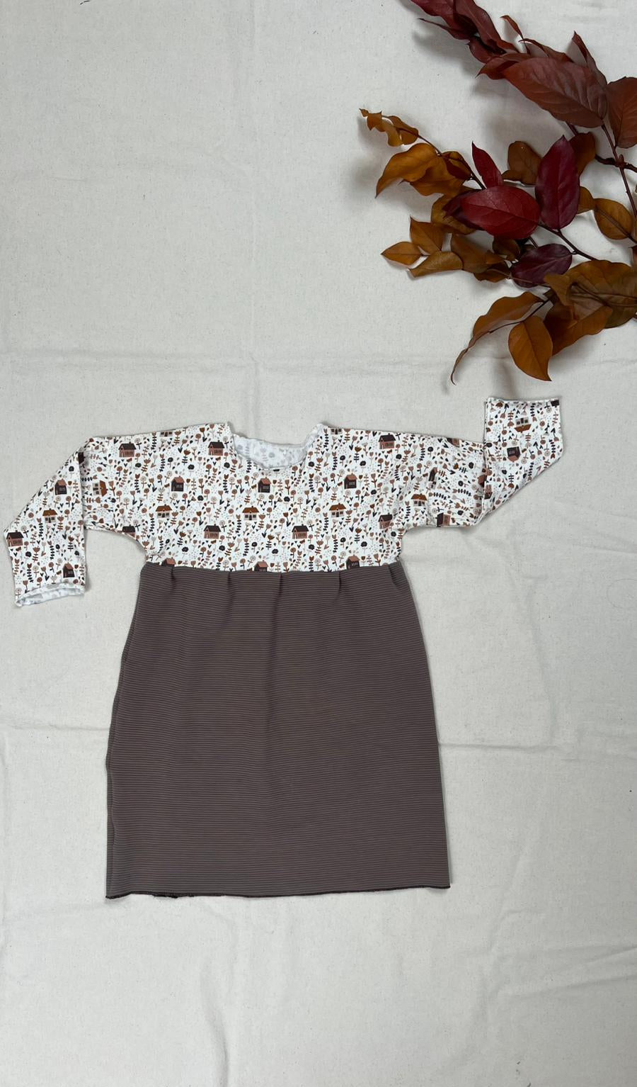Un abitino pratico e bello con stoffe esclusive e uniche. Per chi vuole stare comoda ma allo stesso tempo distinguersi. Il corpino è realizzato in jersey di cotone la gonna in jersey di cotone felpato.