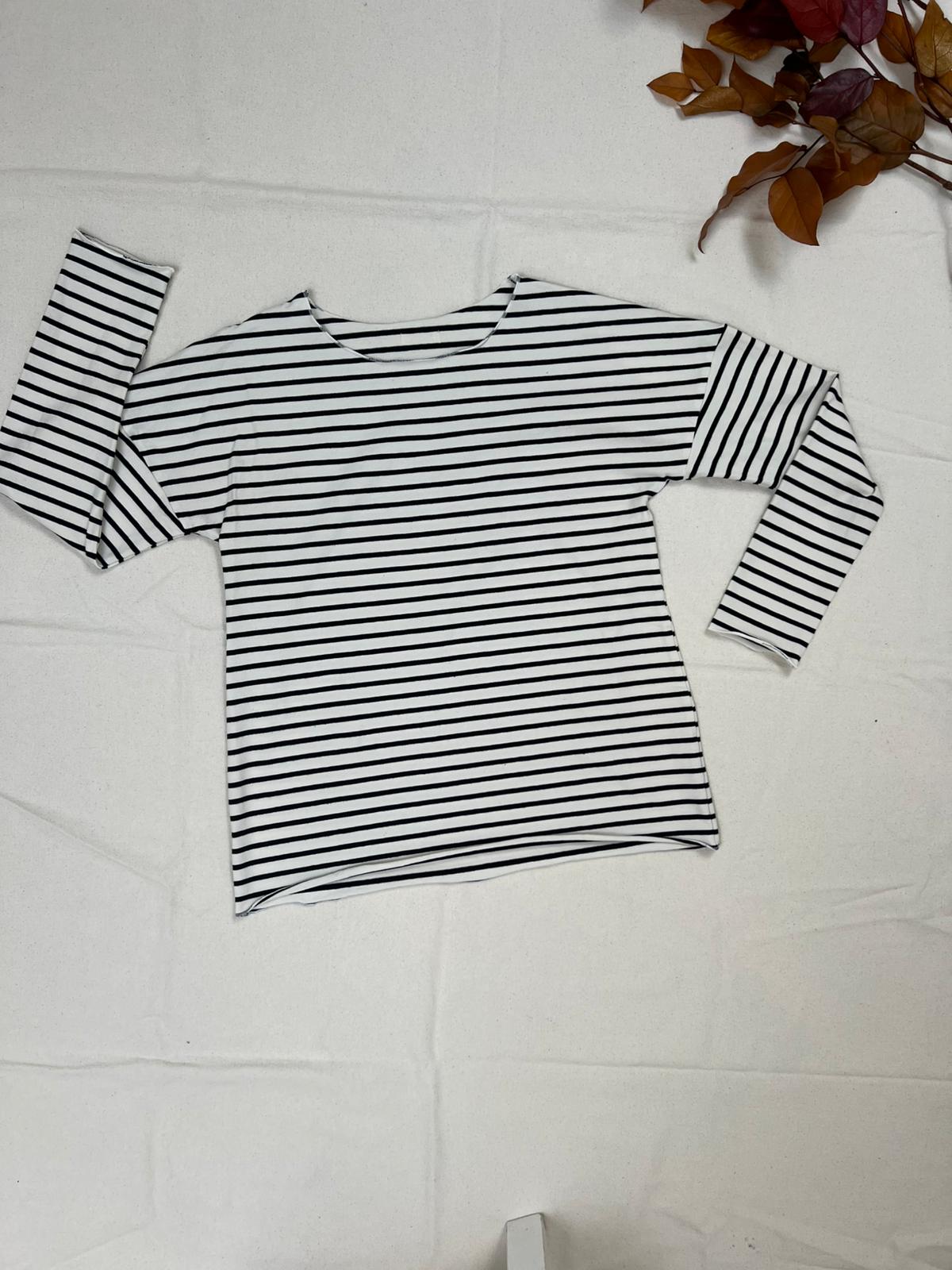 La manica è lunga, la lavorazione del rollè sul fondo manica e sullo scollo rende il capo fine e romantico.